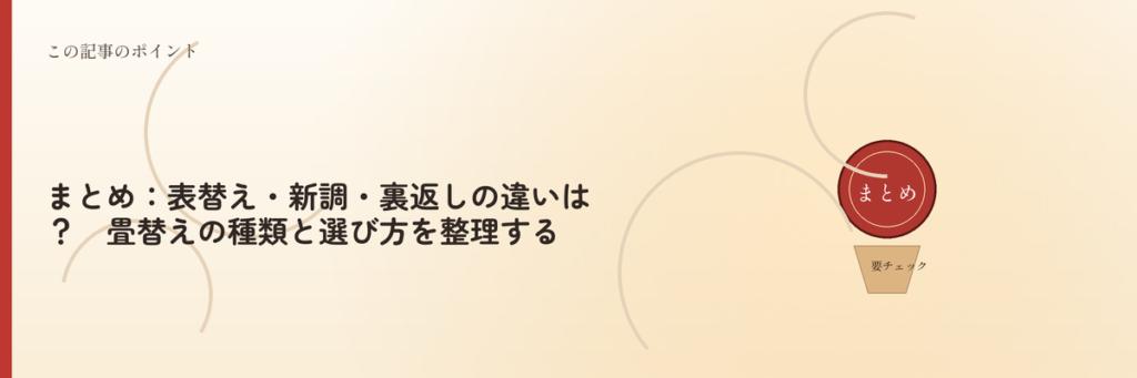 まとめ:表替え・新調・裏返しの違いは?畳替えの種類と選び方を整理する